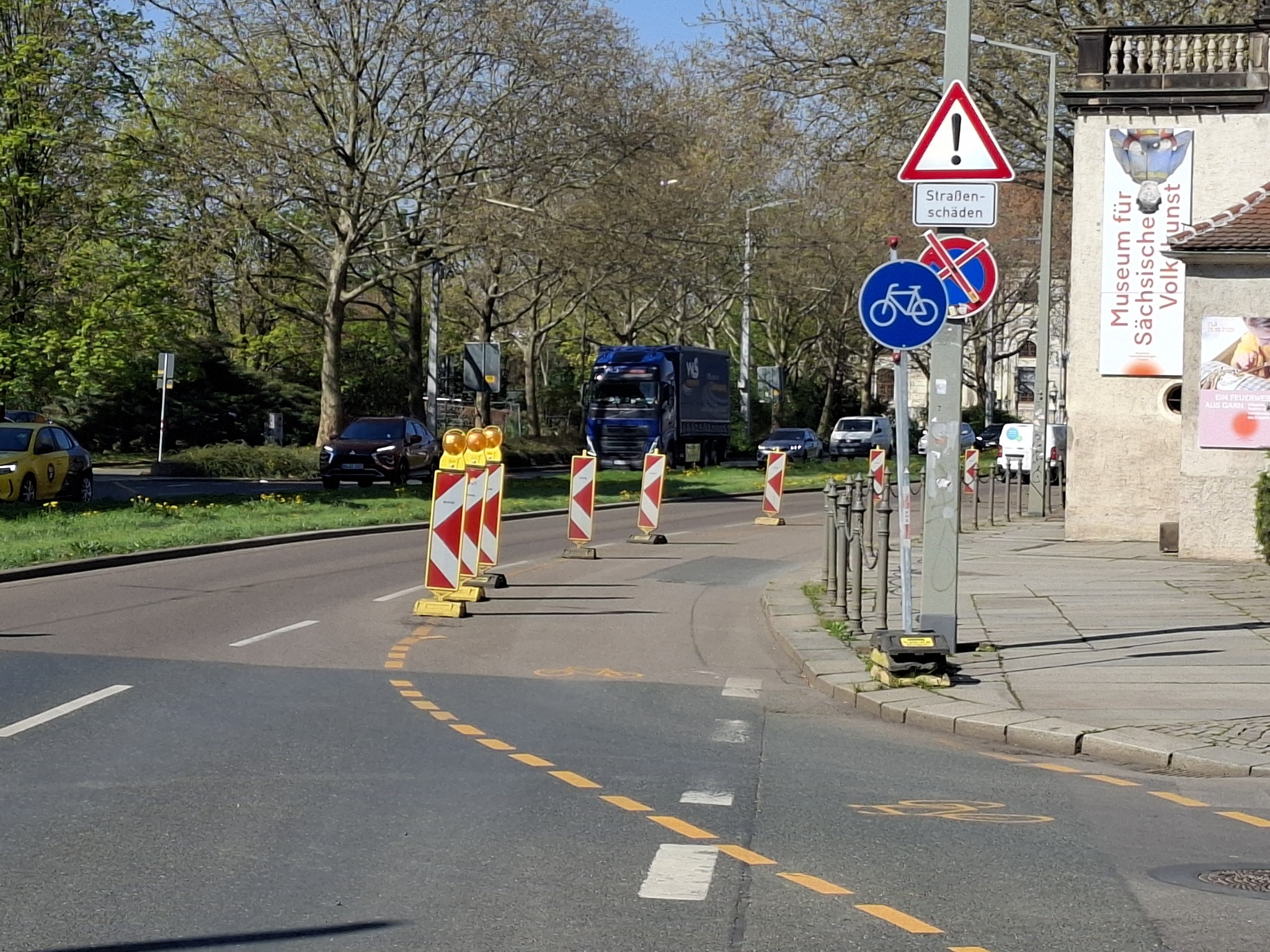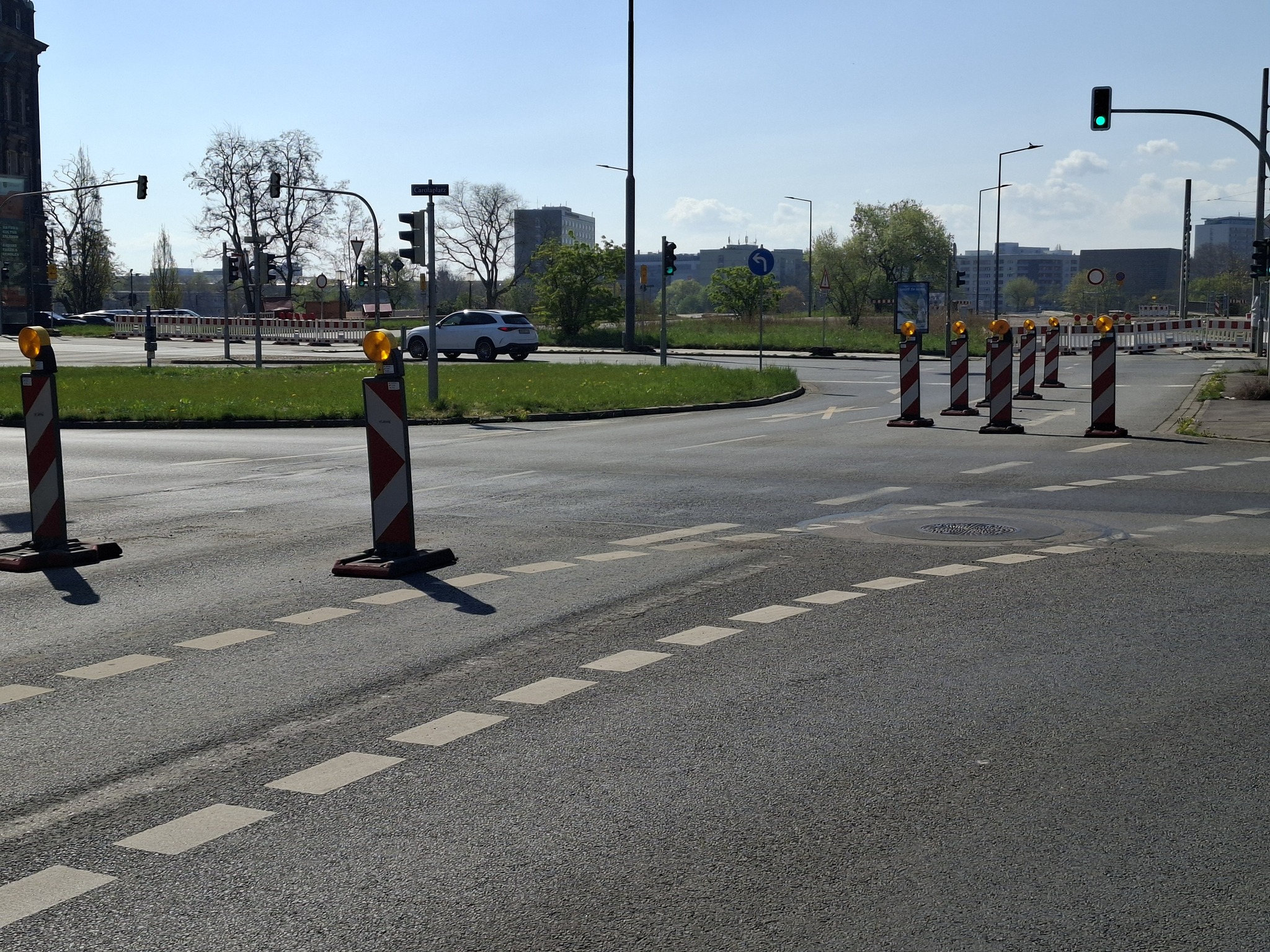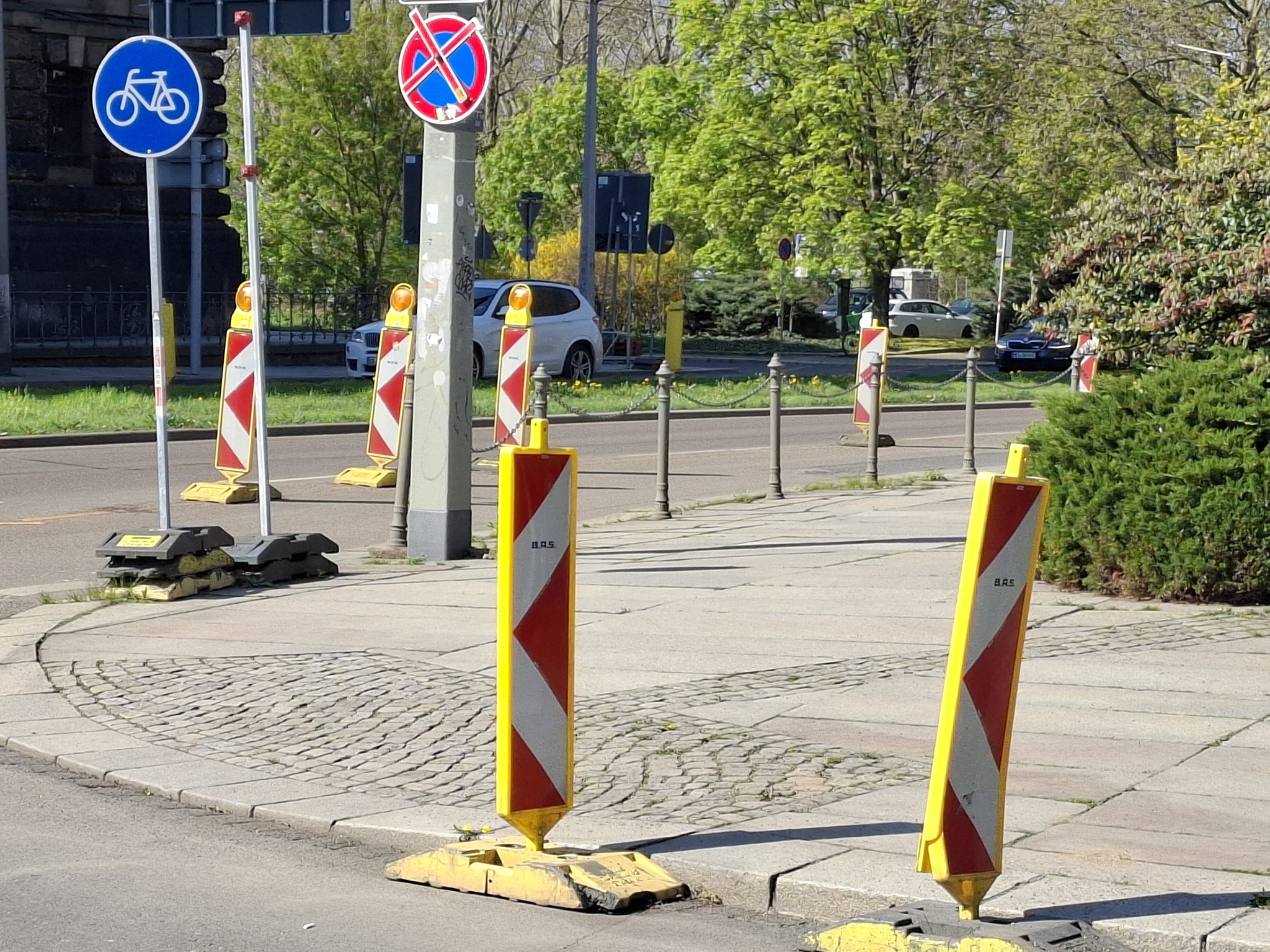 Die provisorischen Schilder und Baken zur Verkehrsführung im Umfeld der Carolabrücke sollen beseitigt werden. Im Bauausschuss des Stadtrates wurde am 15. April 2026 unser Antrag, den wir dazu gestellt hatten, beschlossen und der Verkehrsbürgermeister ist nun beauftragt, den Wald an Baken und Schildern im Umfeld der eingestürzten Carolabrücke zu beseitigen. Die Kosten dafür belaufen sich inzwischen fast auf eine halbe MILLION Euro. Angeblich ist Dresden pleite, aber für nutzlose Schilder, nicht nur an dieser Stelle, ist immer Geld da.
