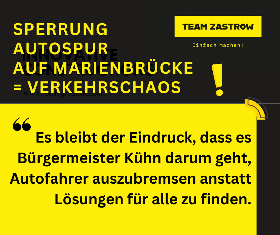 Die erneut beabsichtigte Wegnahme einer Autospur auf der Marienbrücke im Adventsverkehr wird zum Verkehrschaos führen. Bereits jetzt kommt es täglich zu massiven Staus auf der Brücke und im Verlauf der zur Brücke führenden Straßen. Die den Planungen zugrunde liegenden Zahlen der Landeshauptstadt sind völlig veraltet und stammen aus dem Jahr 2023, lange vor dem Einsturz der Carolabrücke.